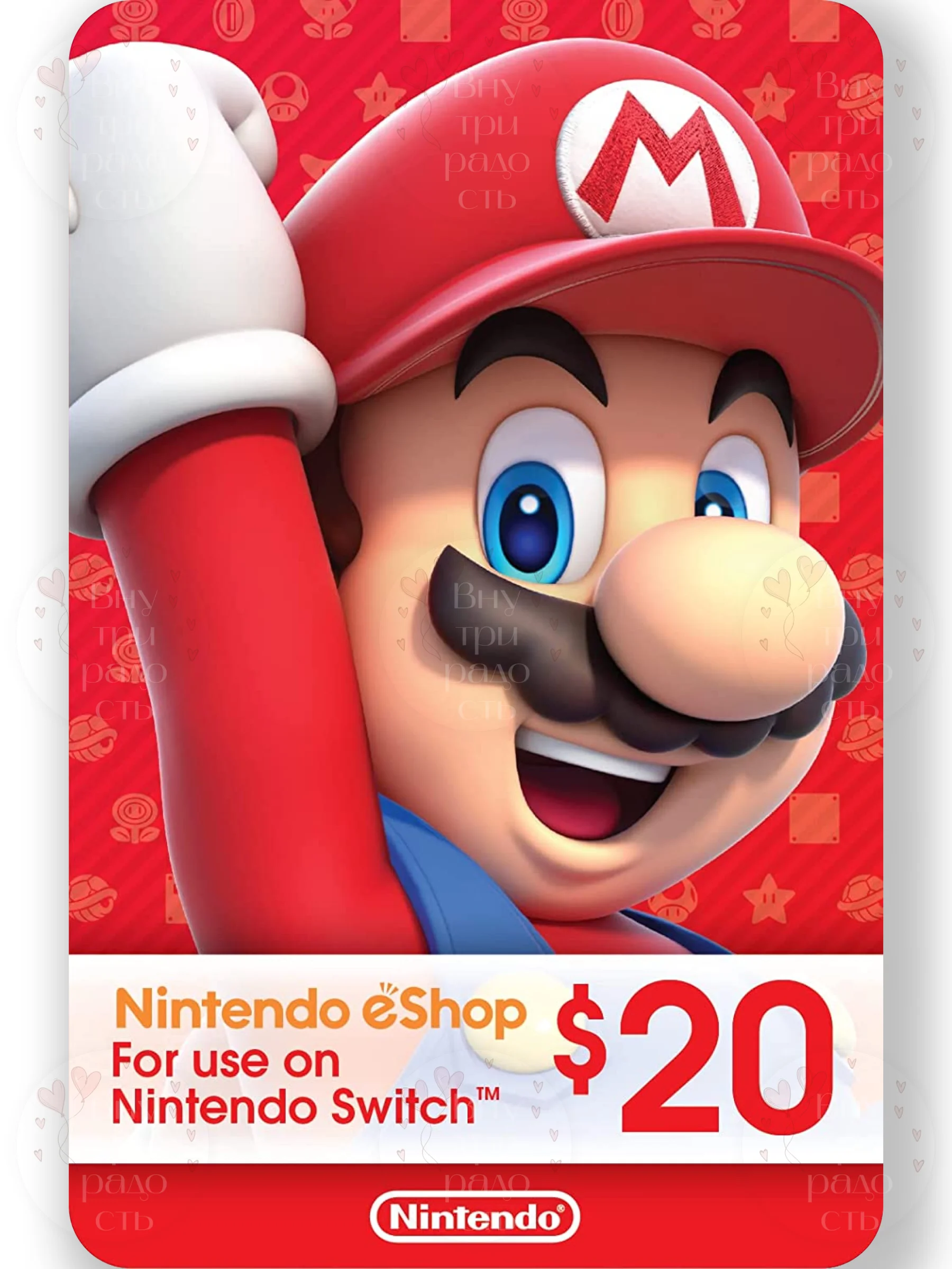 Карта Nintendo eShop предназначена для пополнения счета в цифровом магазине Nintendo eShop. Средства на счету в Nintendo eShop можно использовать для покупки цифровых версий игр, а также дополнительные материалы к ним, классические игры для сервиса Virtual Console и другие цифровые товары для приставок Wii U, Nintendo 3DS и Nintendo Switch. Карта на 5/10/20/35/50/70/99$ для региона USA. Вы приобретаете полностью лицензионный код подарочной карты. Активация кода на сайте nintendo.com